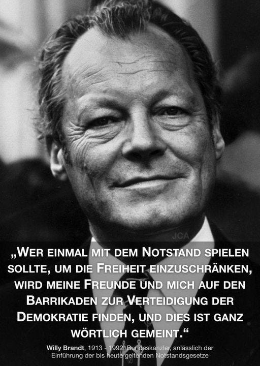 Genau deshalb darf es keine (Notstandsgesetze) geben. Im Notstand findet alles und jeder seinen Platz. Dafür braucht es keine gesonderten Gesetze.
